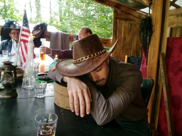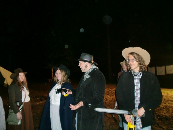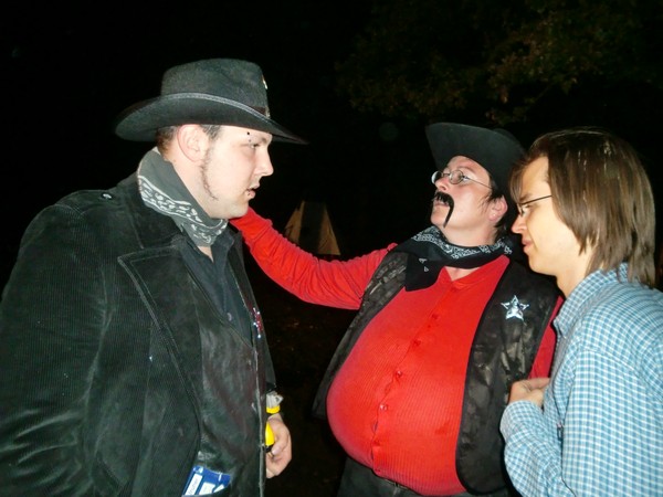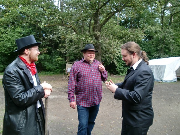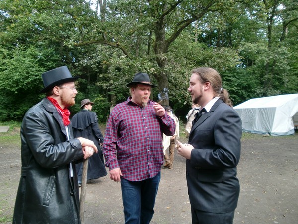 Das erste Deadlands Live fand im Rahmen unserer 7. Palaver Zeltcon, die vom 17.09.10-19.09.10 in Winterreute veranstaltet wurde, statt. Bei unserem eigenen kleinen Live-Regelwerk gilt weniger ist mehr, da sich die Spieler auf gutes Rollenspiel und nicht auf regelreiterei konzentrieren sollen. Hier gibts den passenden Charakterbogen zu unserem Live.